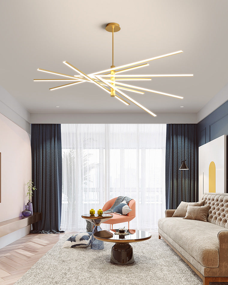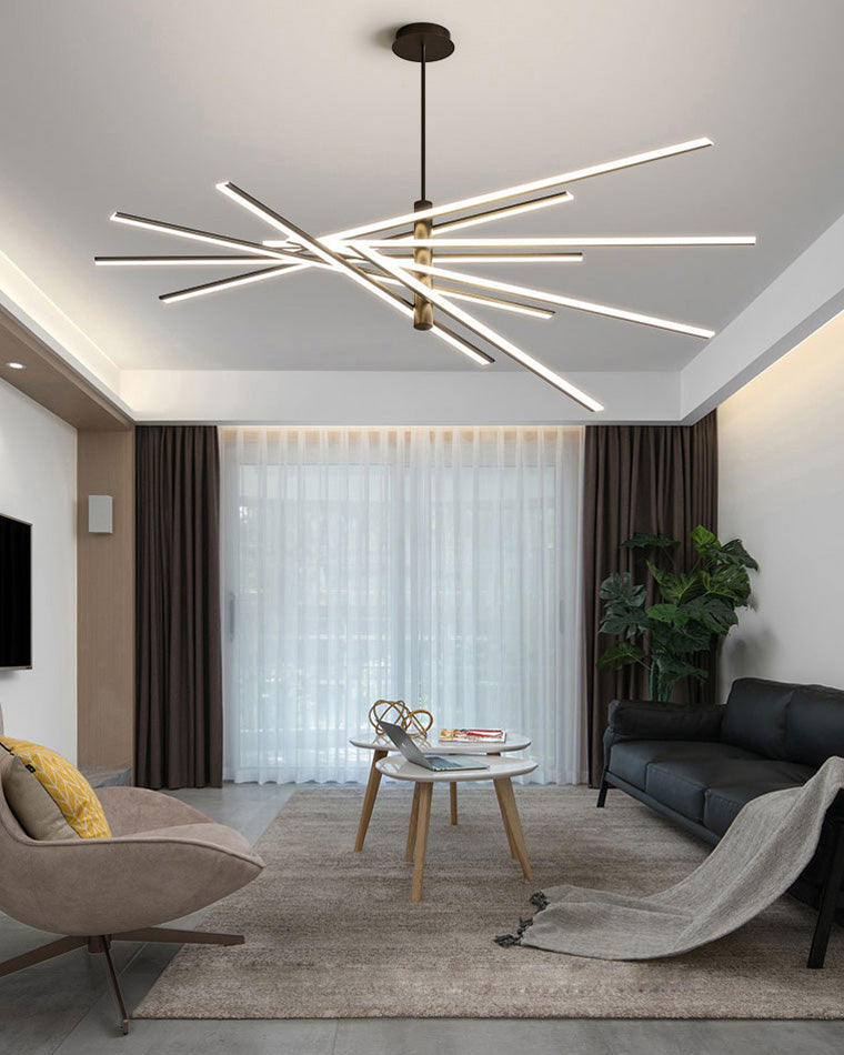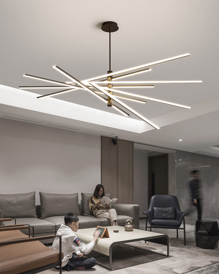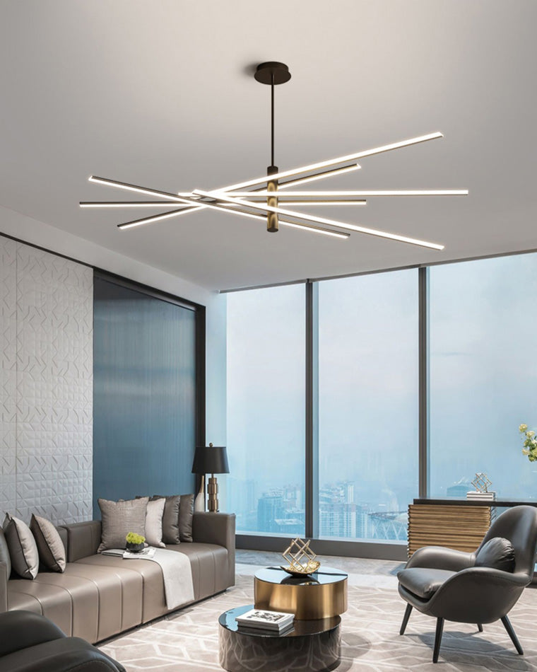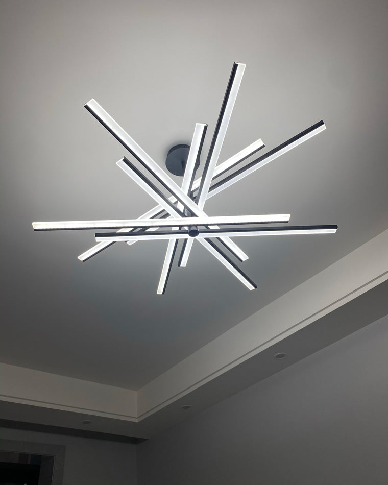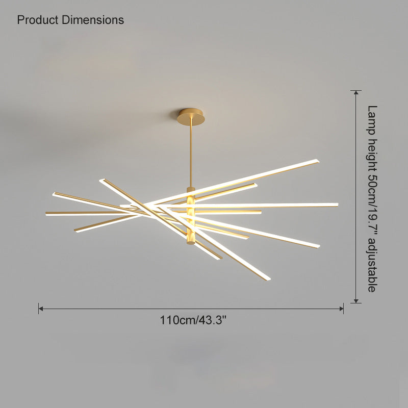 This modern Diff Adjustable&Dimmable Strip Chandelier is engineered with the sophisticated industrial feel of high tech helicopter rotors, each arm adjusts up or down with advanced LED's. A complex aerodynamic structural design made simple with advanced technology, allowing varying configurations. With its sleek modern design, Perfect for kitchens and living rooms.