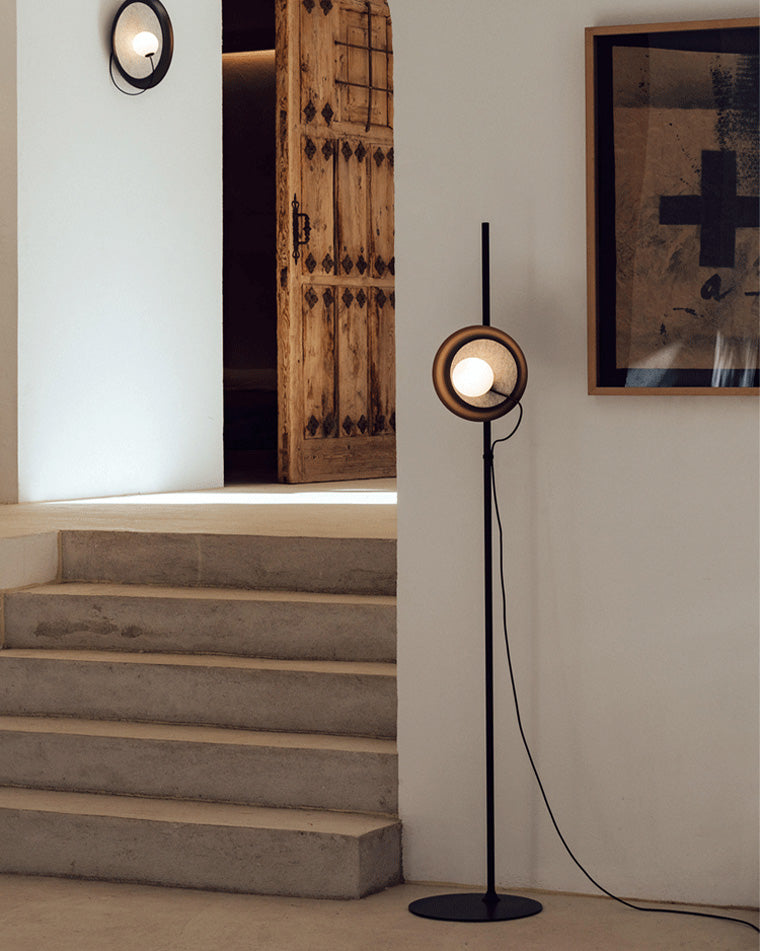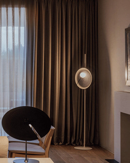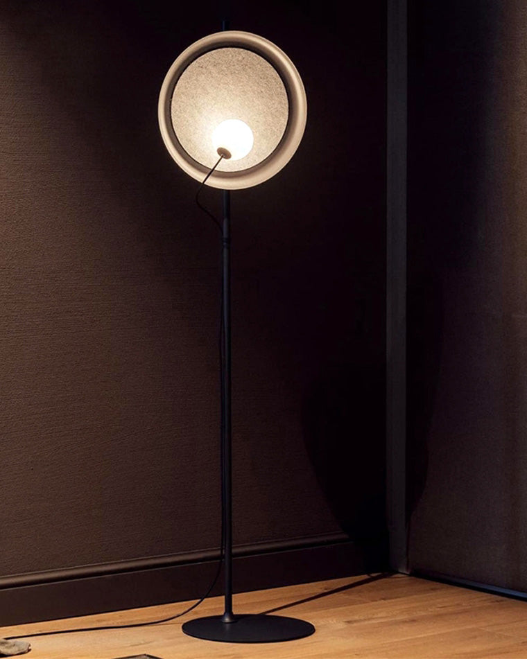 The Lamp is a designer floor lamp that play with the connecting thread between the glass ball and the shade. The glass ball can moves lightly on the shade fabric, which in turn acts as an acoustic insulator. The magnet inside the glass ball generates a magnetic field that subtly magnetizes the shade. The design of this fixture makes it perfect for spaces looking to generate rhythm and dynamism such modern living room and bedroom.