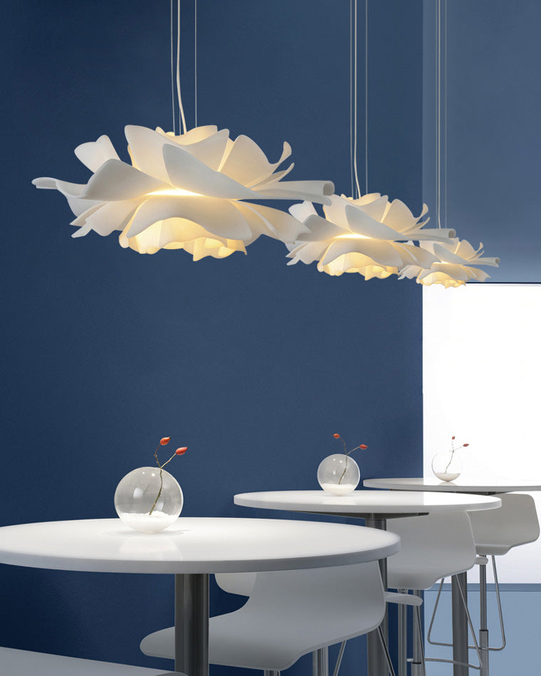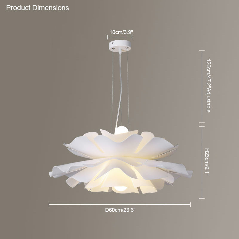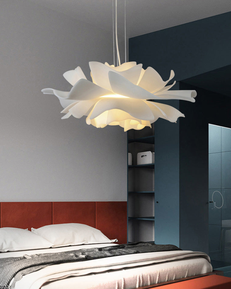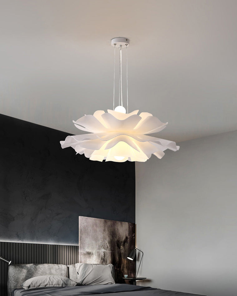 No two romances are alike, nor are these stunning pendants. The pendant evokes a soft and weightless floral form Crafted from hand-formed acrylic “petals” , It features a lovely contemporary style and has an enchanting appearance due to its wavy structure. The soft diffused glow creates the perfect atmosphere and makes the Fleur stand out in a bedroom, entryway, or dining room in a modern or transitional-style setting.This surprisingly lightweight pendant was inspired by childhood memories of picking petals off daisies along with the ageless lovesick refrain. In this case, we do love.