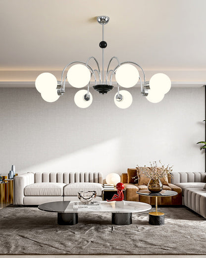 Bring an Art Deco touch to your living room or bedroom with the Diff Glass Globe Chandelier! Featuring a sleek gold or chrome finish, this chandelier will add a touch of glamour to any space. Its glass globes also provide a warm and inviting glow, perfect for creating a cozy atmosphere. Elevate your home decor with this stunning piece today!