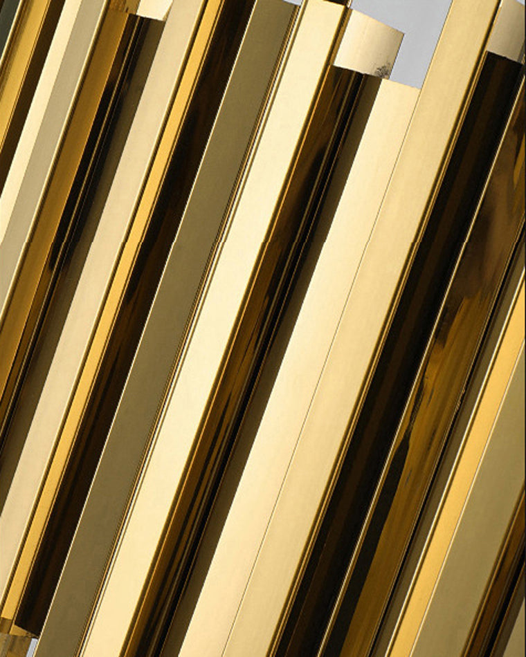 The Luxury Round Chandelier has a modern design suitable for both classic and contemporary interiors. The round and elongated shape of the chandelier is created by a combination of staggered gold panel structure supporting cascading striking sculpted crystal rods. The elegant chandelier is an ultimate statement lighting piece which offers beautiful lighting and will effortlessly enhance your home decor. It is an iconic chandelier lights for your living room, dining room and Bedroom.