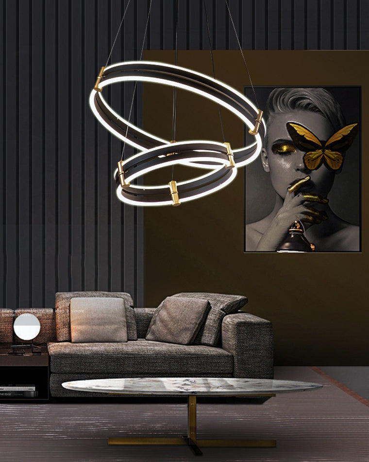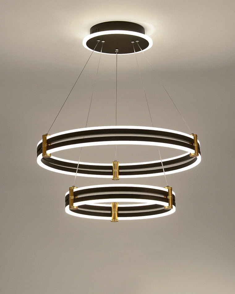 The Diff 2/3 Tier Circular Chandelier is the perfect addition to any modern home. With its contemporary black design, it will add a touch of elegance and sophistication to any living space. Our high-quality chandelier is round and sleek, making it the perfect centerpiece for your home!