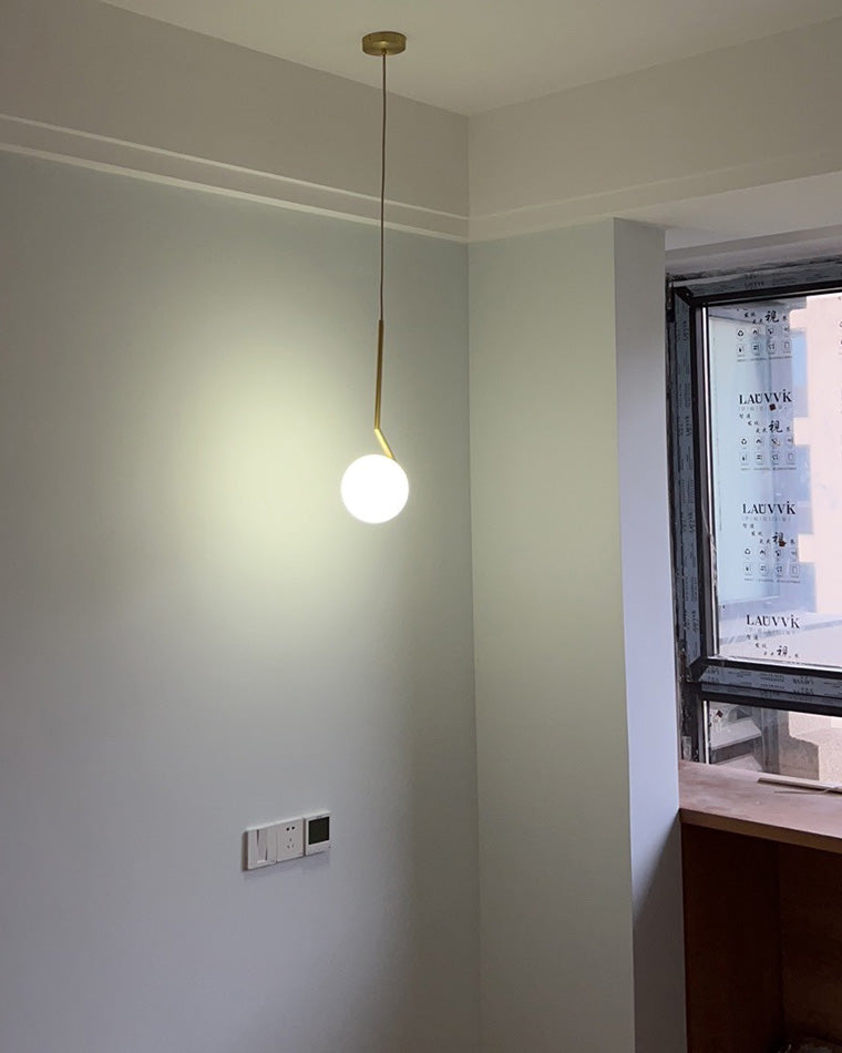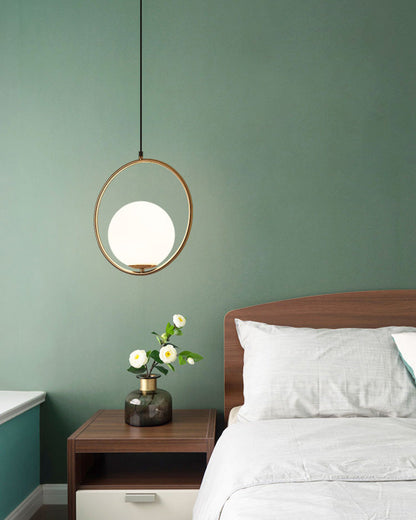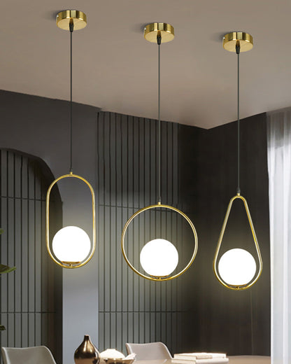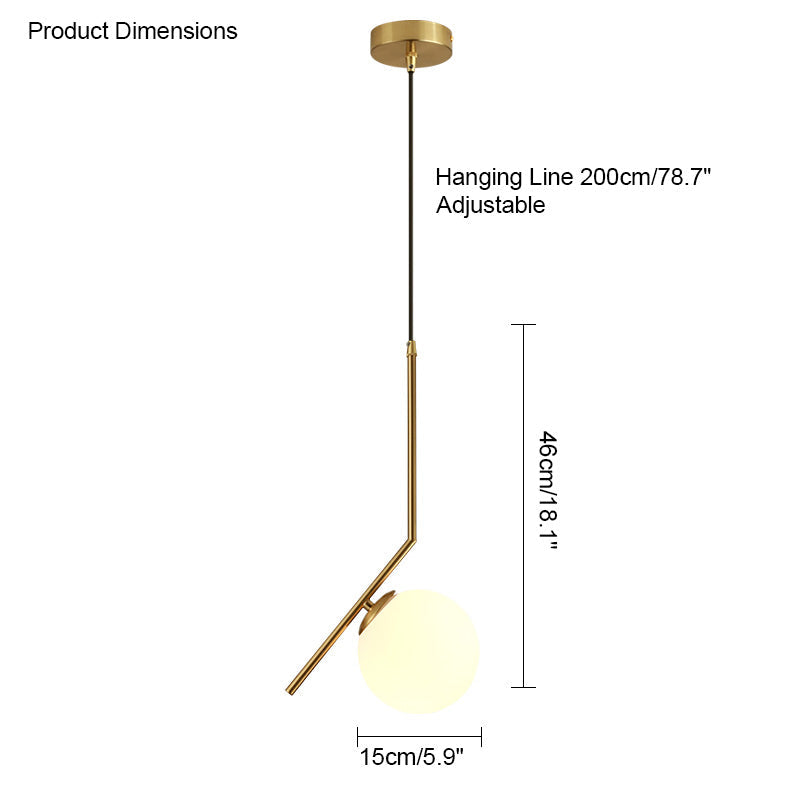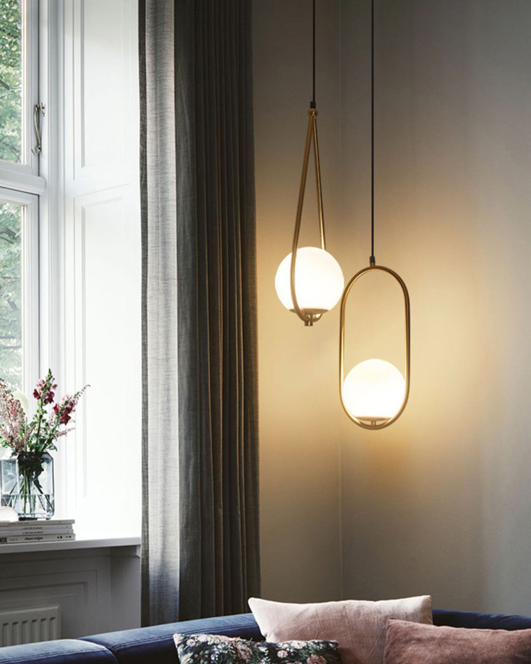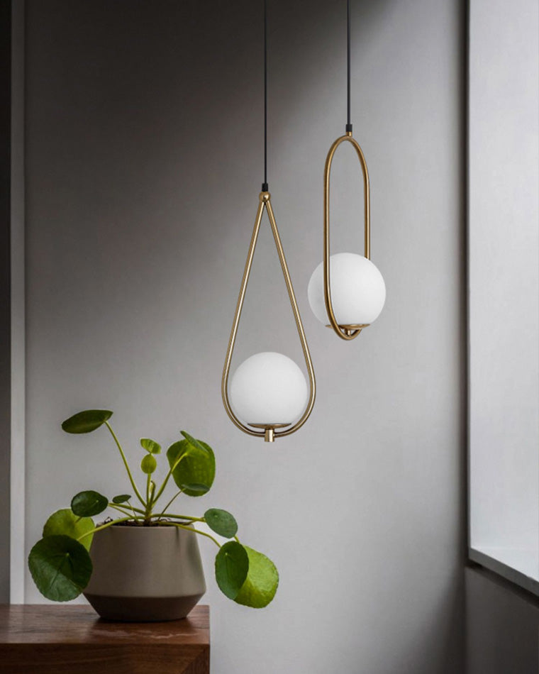 The Mila Pendant light was realized through the marriage of hand blown glass and the soft geometry of a bent metal form. Simple and elegant, the glow of a pearl-like sphere is coddled in perfect harmony within an elongated loop. the Mila is a timeless and elegant modern piece perfect for bedrooms.