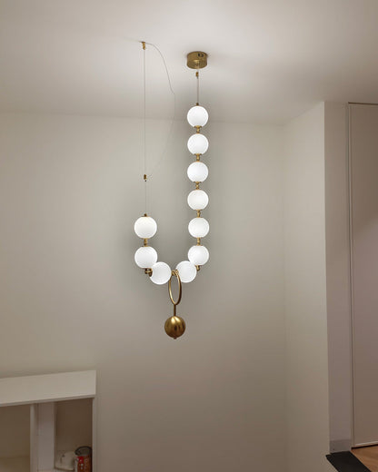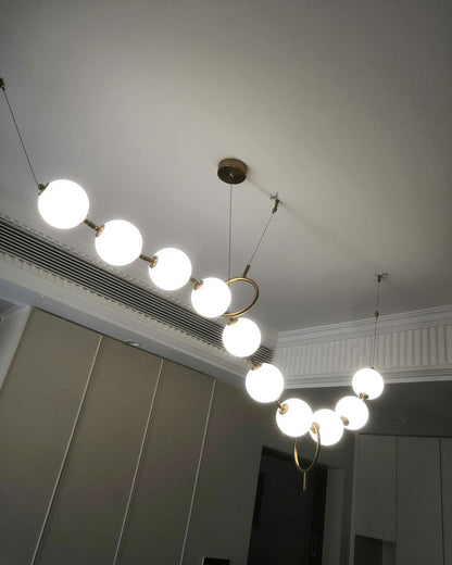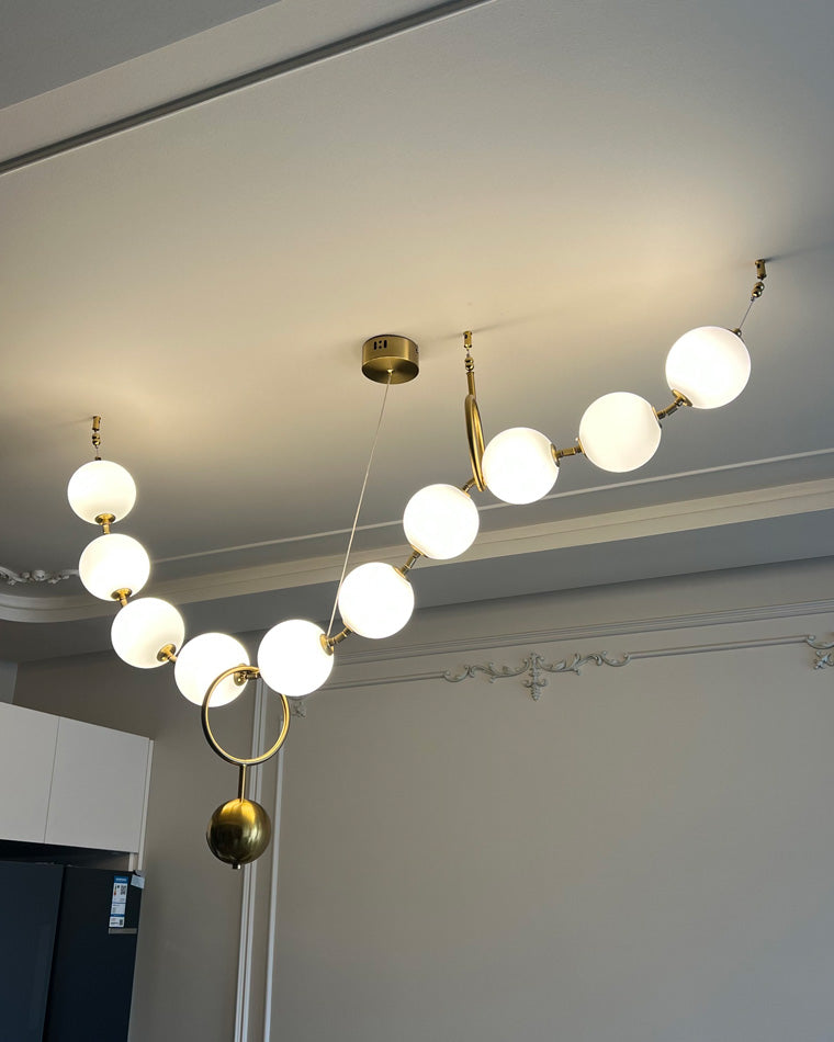 Make a statement with the stunning DF2102 String Pearl Chandelier. Featuring an elegant design with a string of milk glass balls, this chandelier is the perfect accent for any modern living room, kitchen island, or dining room. Illuminate your home with style!