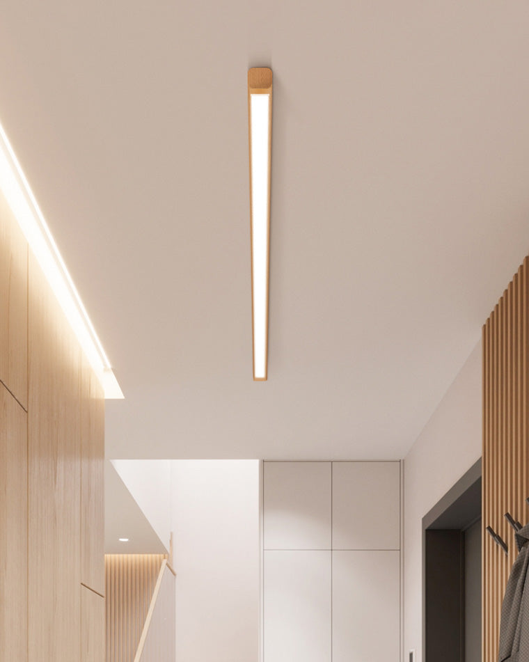 Bring warmth and style to any room with our Diff Long Linear Wood Ceiling Light. Made from natural wood, this decorative piece adds a touch of simplicity to your bedroom, living room, or hallway. Easily adjust the ambiance with the included remote, making it the perfect addition to any space. Dimmable and sleek, it's a must-have for any modern home!